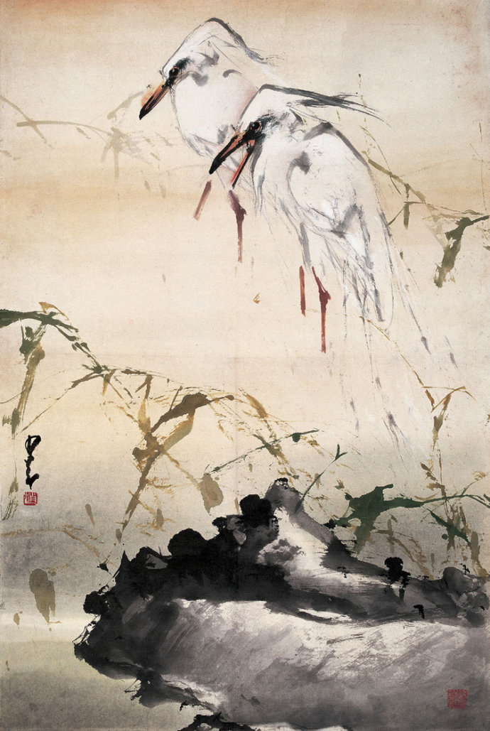A legkedveltebb növényfestményeken (szilvafavirág, orchidea, krizantém) a madárvilág és a vizek apró képviselőit is szívesen jelenítik meg a festők.