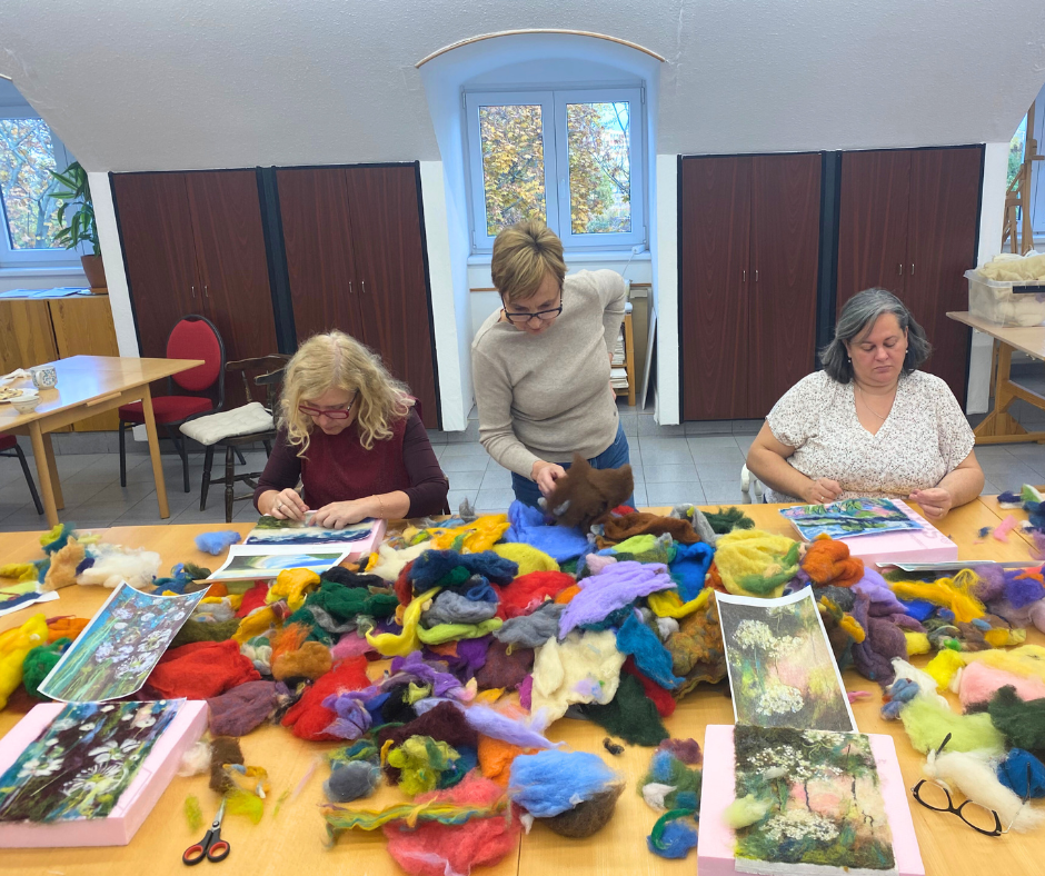 Ezenkívül létezik egy csodálatos textil megmunkálási technika, amivel hasonló módon tudjuk keverni a színeket, mint a festő a palettáján a festéket. Ez a művészi tűnemez. Hallgatóink megismerhetik a technika eszközeit, anyagait, elsajátítják a kézi technikákat.